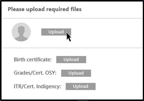 Upload your 2x2 photo and scanned copy of your: